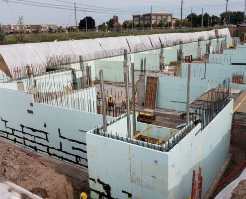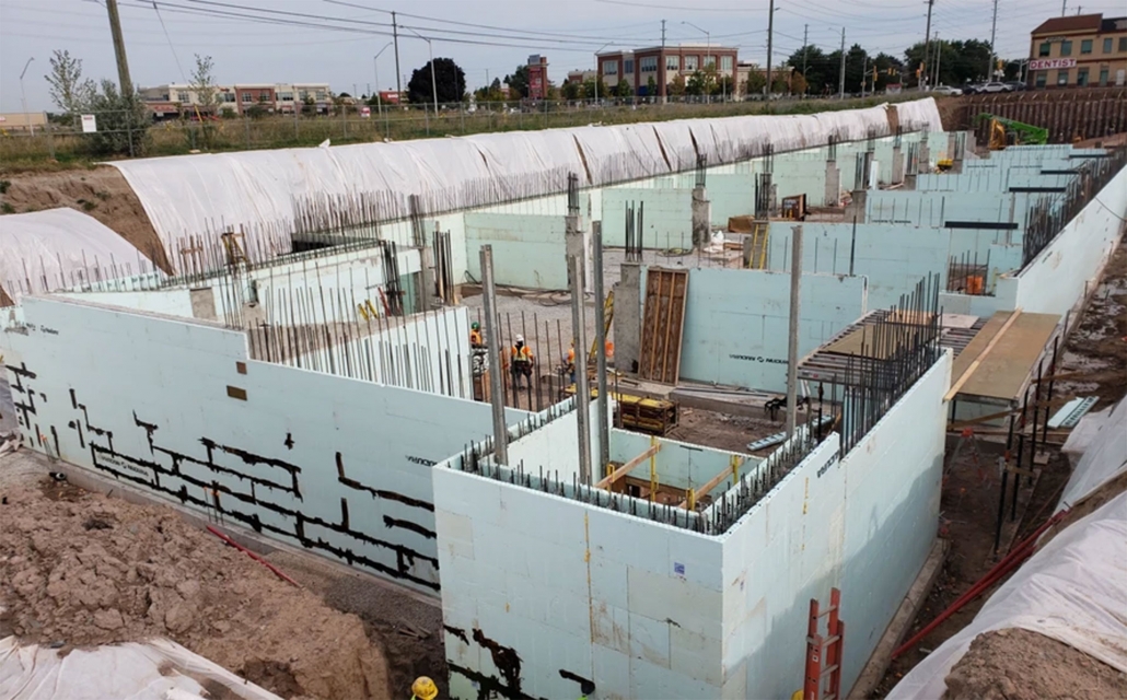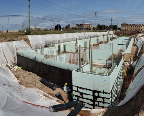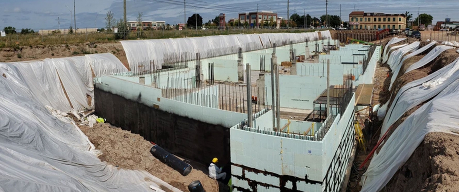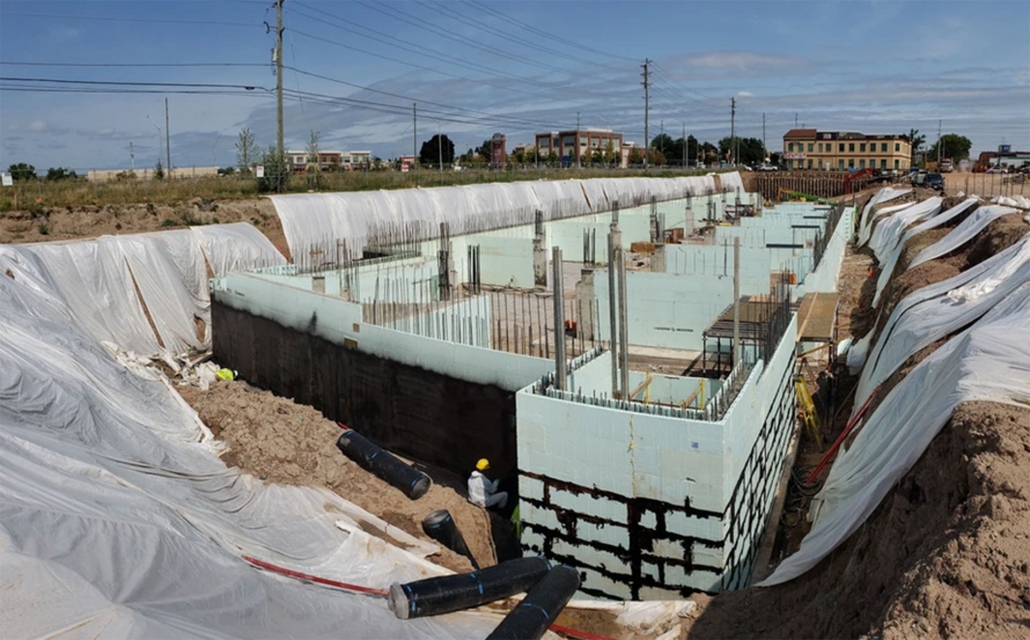 This open-cut foundation application was for Howland Green’s Net-Zero Development. The project specification required an eco-friendly coating that would last a lifetime.