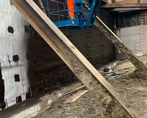 The scope of work completed at Winlock Towns includes 1000 linear feet of blindside waterproofing, roof deck, parking roof deck, and traffic coatings. The project is currently underway.